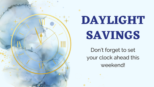 It’s daylight savings this weekend! Don’t forget to set your clocks ahead!