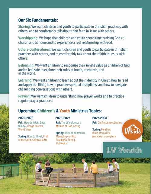 We know that parents are the #1 spiritual influencers of their children. We also know that parenting is a journey full of ups and downs! The goal of LV Youth ministry is to support parents in raising children to become adult disciples of Jesus. We want to see middle school and high school students growing in faith, hope, love, joy, and Christlike character as they share Jesus with others in their homes, schools, and neighborhoods.